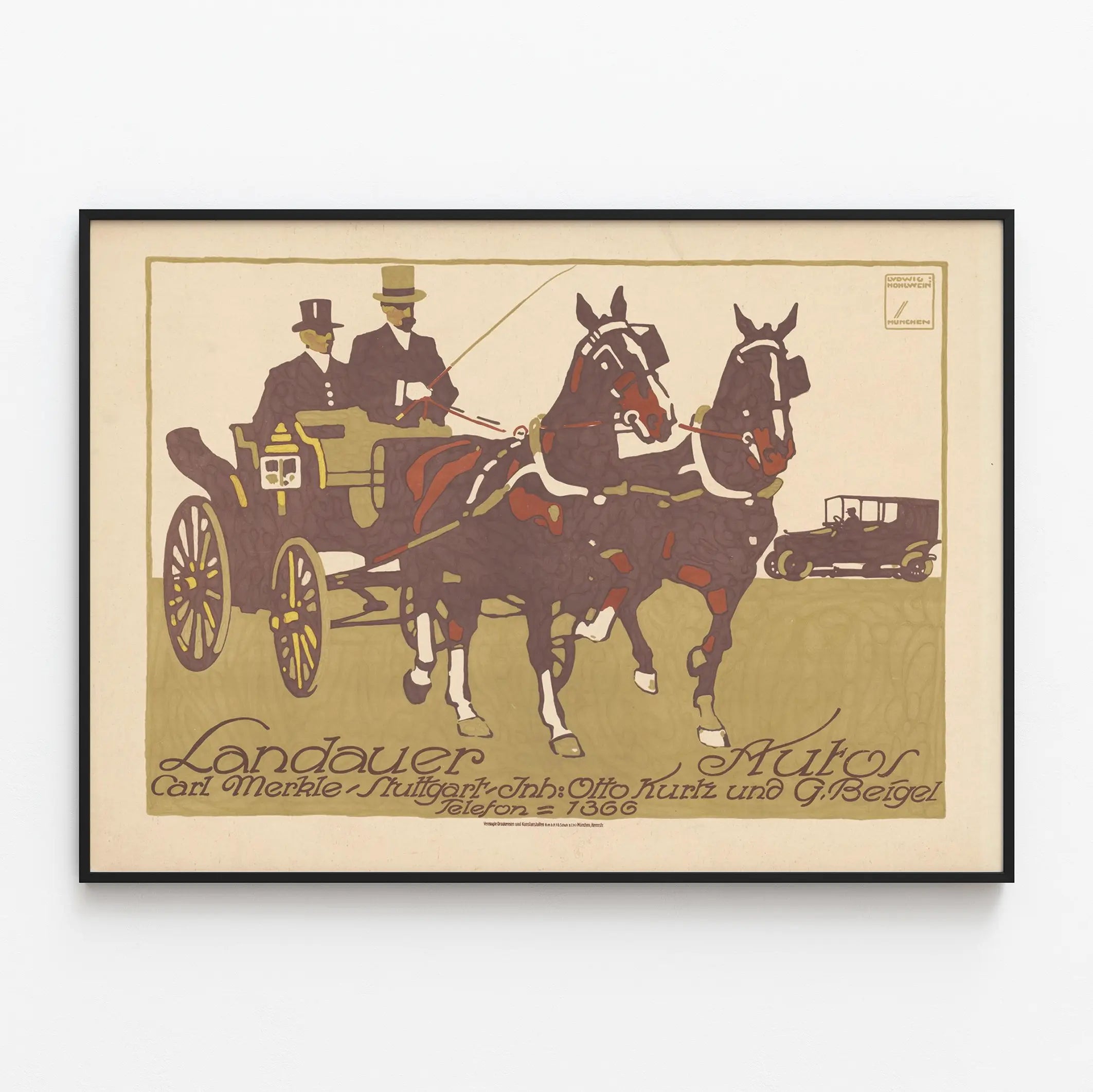 Vintage poster Landauer Autos Stuttgart door Ludwig Hohlwein