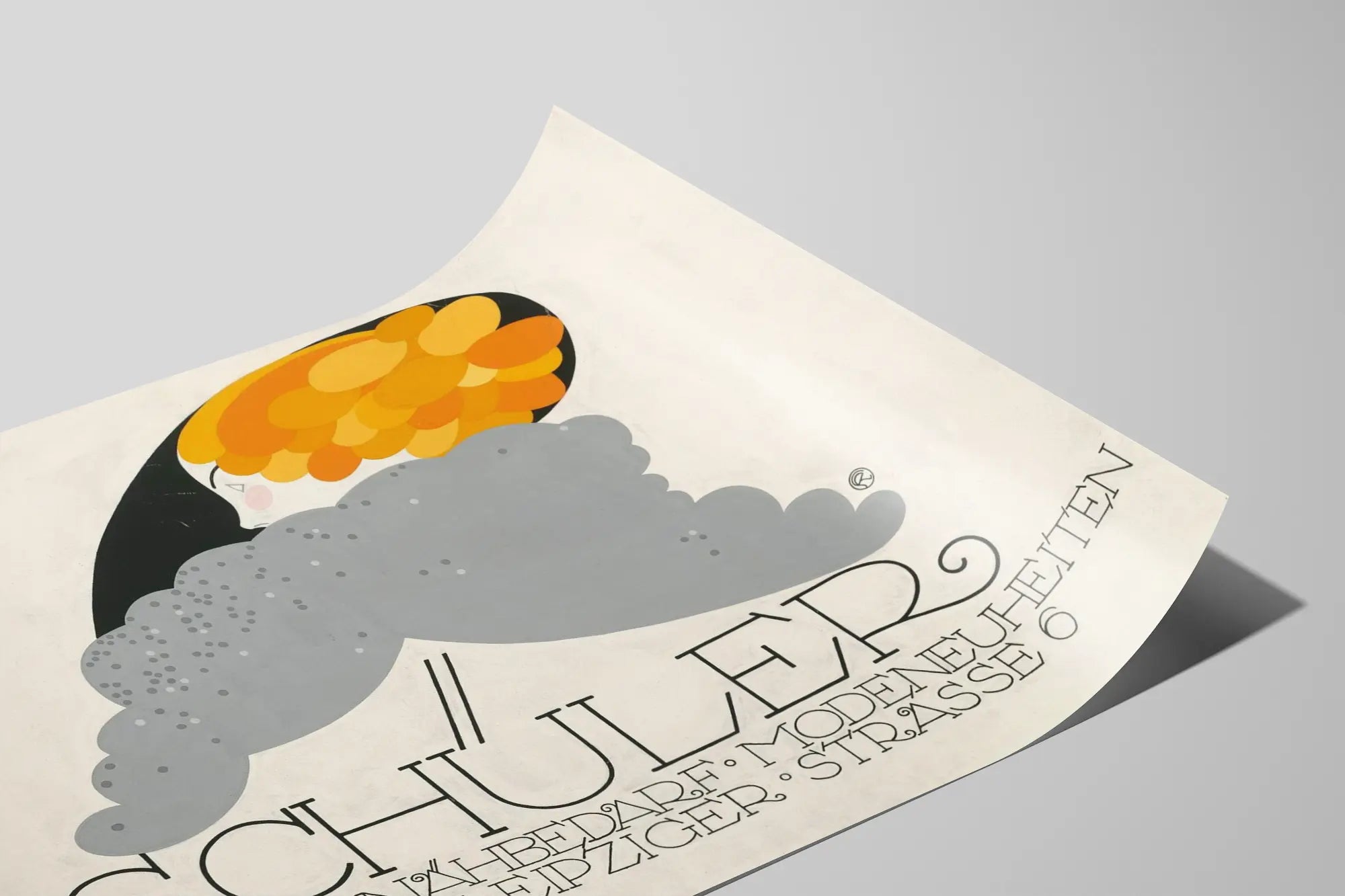 Deze vintage poster van SCHULER is een uniek stuk in de muurdecoratie, ideaal voor liefhebbers van mode en oude grafische kunst. Ze toont een originele en gestileerde illustratie van een vrouwelijke silhouet met een delicate profiel, gekapt met haar in warme tinten geel en oranje. De tekening wordt vergezeld door een grijze wolk met stippen, die een subtiel en elegant contrast toevoegt. Het grafisch ontwerp, gecombineerd met een originele en decoratieve typografie, roept een retro sfeer op die verbonden is met de wereld van mode en accessoires, meer specifiek met naaiartikelen en nieuwigheden van het merk SCHULER uit Berlijn. Deze poster is perfect voor een muurdecoratie die een oude stijl wil combineren met een verfijnde artistieke toets. Of het nu gaat om een woonkamer, slaapkamer of creatieve werkplaats, ze brengt een gevoel van authenticiteit en verfijning. Ze past gemakkelijk in een collectie vintage posters of als blikvanger in een artistiek of modieus interieur. Deze muurdecoratie is ook een uitstekende keuze voor een winkel of een ruimte gewijd aan naaiwerk, waar ze op elegante wijze de wereld van textiel en naaiaccessoires kan benadrukken. Deze strakke grafische poster zal liefhebbers van retro design en originele muurdecoratie zeker aanspreken.