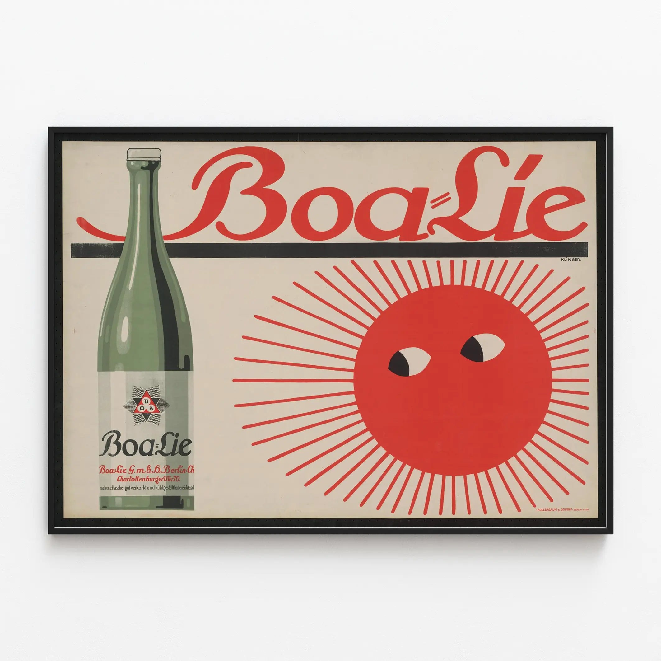 Vintage reclameposter Boa-Lie met fles en geïllustreerde zon