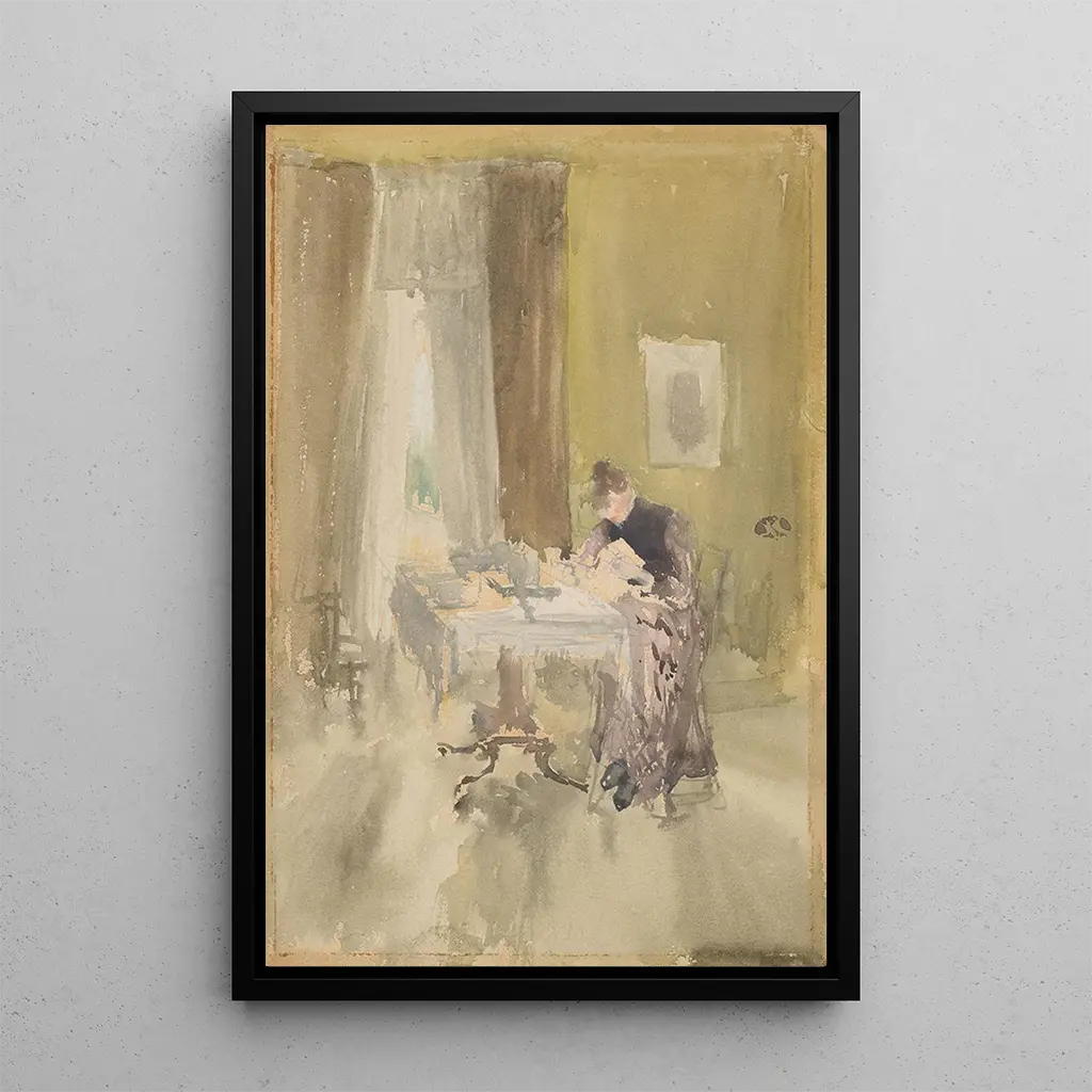 Violet en amber thee : een harmonie van kleuren en gevoelens In het doek "Violet en amber thee" dompelt James Abbott McNeill Whistler ons onder in een delicate wereld waar nuances van violet en amber zich subtiel mengen. De compositie, zowel eenvoudig als verfijnd, roept een sfeer van sereniteit en contemplatie op. De vloeiende vormen en het spel van licht creëren een dialoog tussen schaduw en licht, en nodigen de kijker uit om zich onder te dompelen in deze intieme scène. De techniek van Whistler, gekenmerkt door delicate penseelstreken en een beperkte palet, geeft het kunstwerk een emotionele diepte die verder gaat dan het eenvoudige visuele. James Abbott McNeill Whistler : een pionier van de impressionistische beweging James Abbott McNeill Whistler, Amerikaanse kunstenaar uit de 19e eeuw, wordt erkend als een van de voorlopers van de impressionistische beweging. Geïnspireerd door Europese meesters, met name Turner en Monet, heeft Whistler een unieke stijl ontwikkeld die de harmonie van kleuren en de compositie benadrukt. Zijn werk onderscheidt zich door een poëtische benadering van de realiteit, waarbij licht en kleur de overhand krijgen op het onderwerp. "Violet en amber thee" past binnen een periode waarin de kunst begint af te wijken van realistische representaties om meer abstracte gevoelens te verkennen, en markeert zo een belangrijke stap in de evolutie van de moderne kunst. Een decoratief kunstdruk met vele voordelen De kunstdruk van "Violet en amber thee" is een decoratief stuk dat uw interieur zal verrijken, of het nu in een woonkamer, kantoor of slaapkamer is. Het zachte en rustgevende palet brengt een vleugje elegantie en verfijning in elke ruimte. De kwaliteit van de kunstdruk garandeert een perfecte fideliteit aan de kleuren en details van het originele kunstwerk, zodat u kunt genieten van de esthetische aantrekkingskracht van dit iconische doek. Door te kiezen voor deze kunstdruk, kiest u voor een werk dat niet alleen uw decoratie verfraait, maar ook een rijke artistieke geschiedenis oproept.