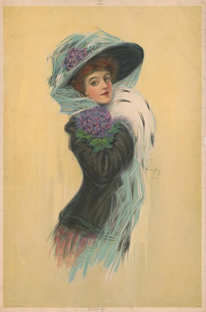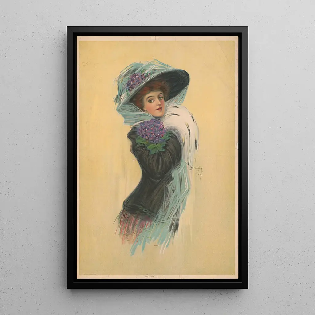 Hamilton King, actief in het begin van de 20e eeuw, wist zich te onderscheiden door zijn unieke portretstijl. Geïnspireerd door Art Nouveau, wordt zijn stijl gekenmerkt door organische vormen en levendige kleuren. King wijdde zijn carrière aan het vastleggen van de essentie van zijn onderwerpen, met een bijzondere nadruk op vrouwelijke schoonheid. Zijn werken zijn veel geëxposeerd en gewaardeerd, en hebben bijgedragen aan de evolutie van het moderne portret. "Violet" illustreert perfect zijn talent en zijn inzet voor een artistieke representatie die traditie en moderniteit combineert, terwijl het de vrouwelijkheid viert.