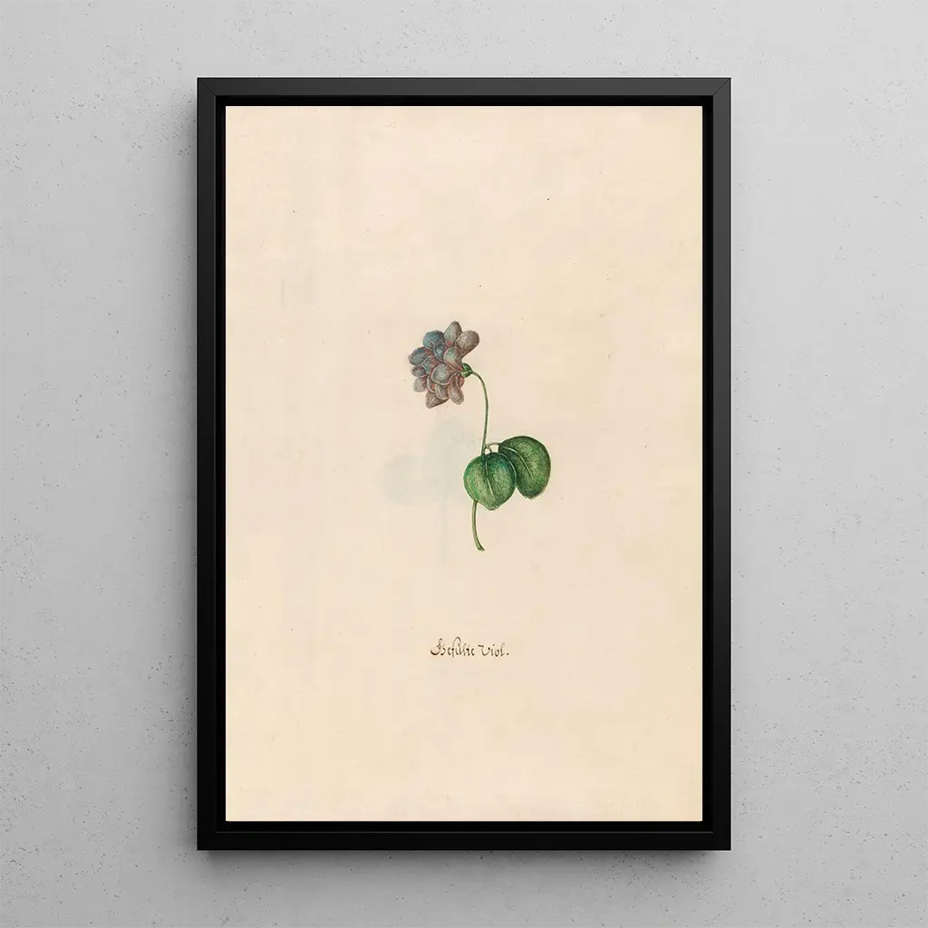 De kunstdruk Violette double van Magdalena Rosina Funck roept een gevoel van verfijning en natuurlijke schoonheid op. De nuances van violet en wit mengen harmonieus, waardoor een rustgevende sfeer ontstaat. De aquareltechniek, met haar lichte en vloeiende penseelstreken, brengt de delicate bloemblaadjes tot leven, terwijl de vage achtergrond de bloem benadrukt. Dit werk nodigt uit tot contemplatie en transporteert de kijker naar een geheime tuin waar elk detail een belofte van sereniteit is. Het licht speelt op de contouren, waardoor de kwetsbaarheid van deze viooltje wordt benadrukt, symbool van bescheidenheid en elegantie.