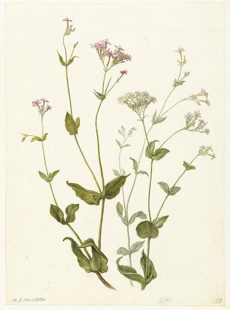 Viscaria of rode en witte pekanjer - Herman Saftleven