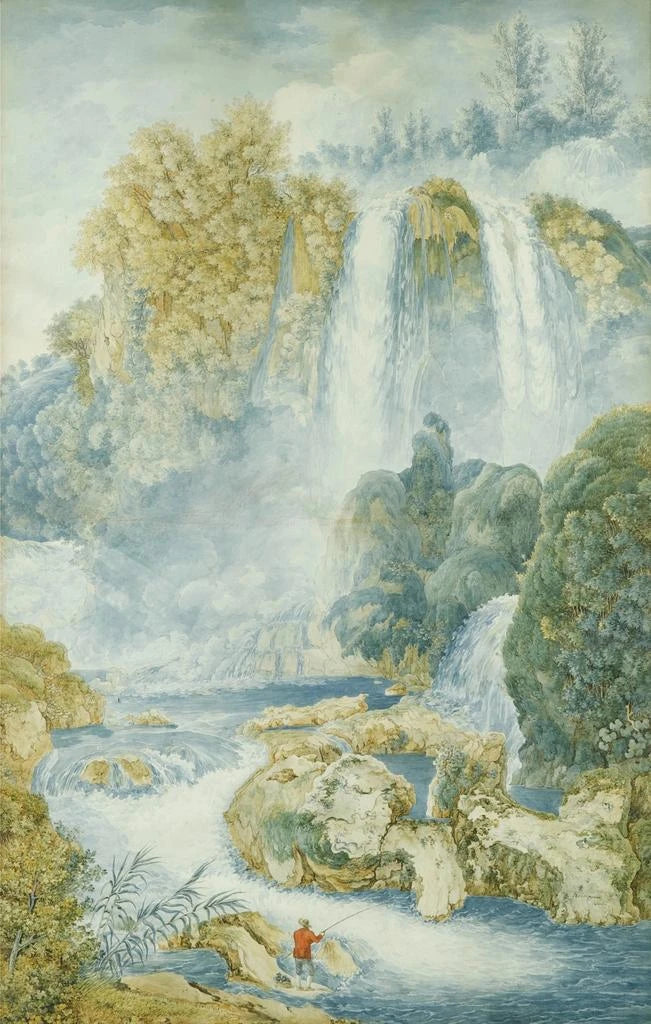 Schilderij Vissers bij de voet van een waterval - Franz Kaisermann | Kunstdruk