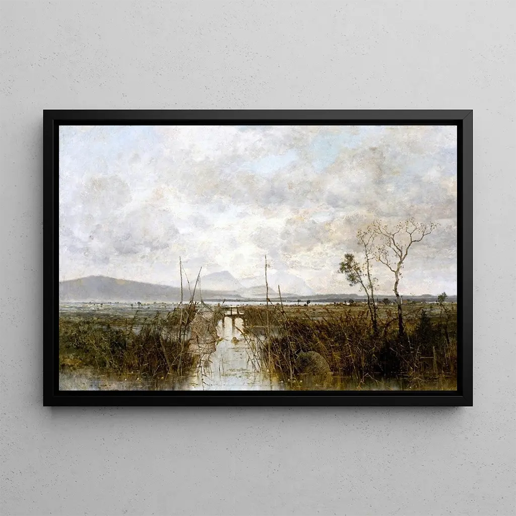 Pêcherijen in het riviergebied van een meer: een onderdompeling in de waterige natuur De doek "Pêcherijen in het riviergebied van een meer" van Karl Heffner roept een rustige scène op waarin natuur en mens harmonieus samenleven. De nuances van groen en blauw mengen zich om een serene sfeer te creëren, terwijl de reflecties van het water een bijna magische dimensie aan het geheel toevoegen. De techniek van de kunstenaar, die delicate penseelstreken gebruikt, brengt de details van waterplanten en vissen die in dit ecosysteem zwemmen tot leven. Dit schilderij nodigt uit tot contemplatie en dromerigheid, en transporteert de kijker naar een wereld waar de tijd lijkt stil te staan. Karl Heffner: een getuige van de natuurlijke schoonheid Karl Heffner, actief in de 19e eeuw, is een kunstenaar die vaak wordt geassocieerd met de romantische beweging, die de natuur en landschappen waardeert. Geïnspireerd door de grote meesters van zijn tijd, heeft hij een unieke stijl ontwikkeld die de schoonheid van landelijke en waterachtige scènes benadrukt. Hoewel minder bekend dan sommige van zijn tijdgenoten, heeft Heffner een significante stempel gedrukt op het gebied van landschapsschilderkunst. Zijn werk getuigt van een tijd waarin harmonie met de natuur centraal stond in artistieke bezigheden, en zijn werken blijven vandaag de dag kunstenaars en kunstliefhebbers inspireren. Een decoratief stuk met vele voordelen De kunstdruk van "Pêcherijen in het riviergebied van een meer" is een ideaal decoratief stuk om een vleugje rust in uw interieur te brengen. Of het nu in een woonkamer, kantoor of slaapkamer is, dit schilderij past perfect in diverse decoratiestijlen, van klassiek tot modern. De kwaliteit van de kunstdruk garandeert een trouwheid aan de kleuren en details van het originele werk, terwijl het een onmiskenbare esthetische aantrekkingskracht biedt. Door voor deze doek te kiezen, kiest u voor een kunstwerk dat niet alleen uw ruimte verfraait, maar ook een diepe verbinding met de natuur oproept.