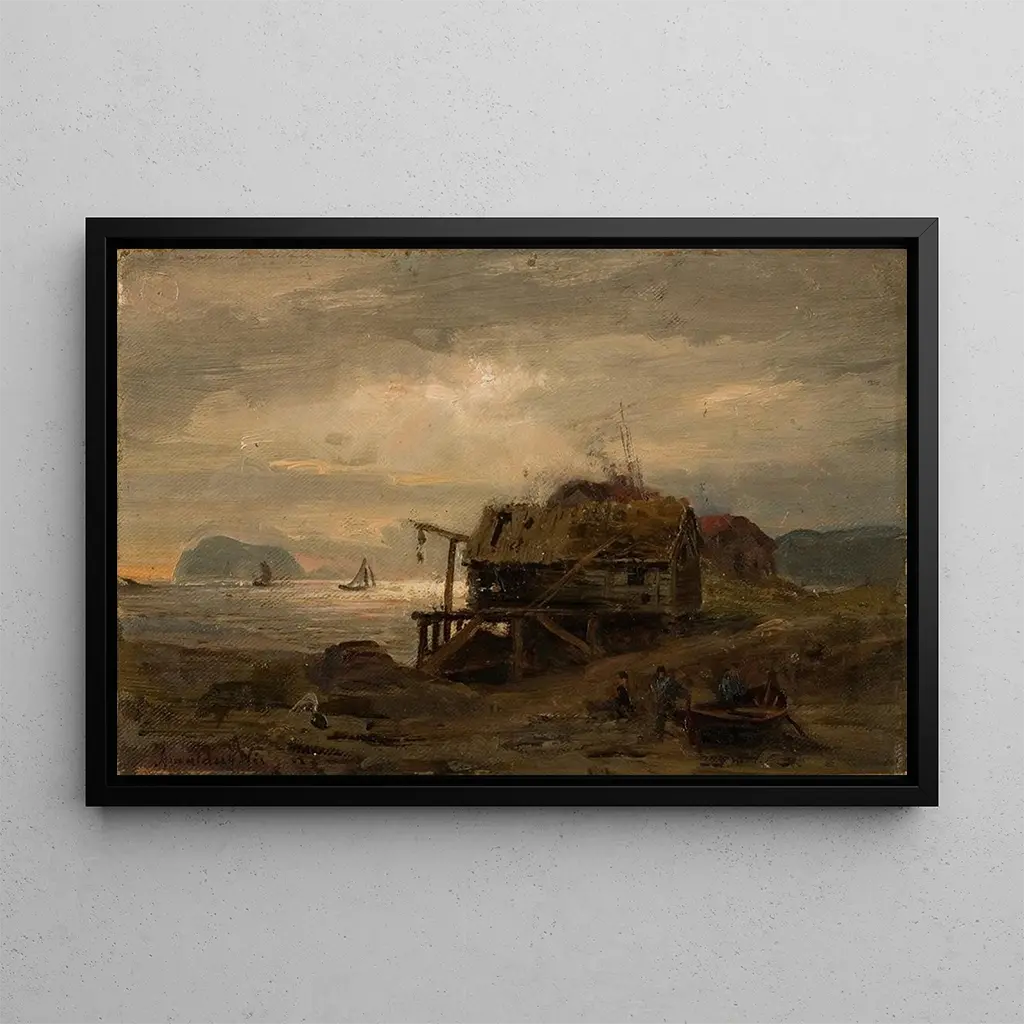 De kunstdruk van "Vissershutten in Kinn" is een decoratief stuk dat perfect past in diverse ruimtes, of het nu een woonkamer, kantoor of slaapkamer is. De kwaliteit van de afdruk garandeert een trouwheid aan de kleuren en details van het originele werk, en brengt een vleugje elegantie en rust in uw interieur. Door voor dit doek te kiezen, kiest u voor een schilderij dat niet alleen uw ruimte verfraait, maar ook herinneringen aan de zee en het maritieme leven oproept, waardoor een warme en gastvrije sfeer ontstaat.