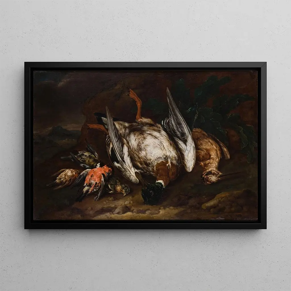 Vogels neergeschoten: een aangrijpende scène uit de natuur De kunstdruk Vogels neergeschoten van Bernaert de Birdt dompelt ons onder in een sfeer die zowel tragisch als fascinerend is. Dit werk, vervaardigd met olieverftechniek, benadrukt een zorgvuldig samengestelde compositie waarin de vogels, bevroren in hun val, lijken een moment van hangend leven vast te leggen. De kleuren, rijk en genuanceerd, roepen de vergankelijke schoonheid van de natuur op, terwijl de minutieuze details van de veren en schaduwen een verbluffende diepte creëren. De kunstenaar slaagt erin een sterke emotie over te brengen, en nodigt de kijker uit na te denken over de kwetsbaarheid van het leven en de schoonheid van vliegende wezens. Bernaert de Birdt: een meester van de Vlaamse stillevenkunst Bernaert de Birdt, actief in de 17e eeuw, wordt erkend om zijn kunstdrukken van stillevens die de essentie van het dieren- en plantleven vastleggen. Geïnspireerd door de Vlaamse meesters van zijn tijd, ontwikkelde hij een unieke stijl die realisme en poëzie combineert. Zijn schilderijen, vaak doordrenkt met symboliek, getuigen van een periode waarin kunst diende om de schoonheid van de natuurlijke wereld te vieren, terwijl ze ook donkere thema’s aansneden. De kunstenaar heeft een onuitwisbare stempel gedrukt op het gebied van dierenportretten, en Vogels neergeschoten is een perfect voorbeeld dat zijn talent en gevoeligheid illustreert. Een decoratief stuk met vele voordelen De kunstdruk Vogels neergeschoten is een decoratief stuk dat uw interieur zal verrijken, of het nu in een woonkamer, kantoor of slaapkamer is. De hoge kwaliteit van de afdruk en de trouw aan de originele details maken het een ideale keuze voor kunst- en natuurliefhebbers. Dit schilderij trekt de aandacht door zijn indrukwekkende esthetiek en aangrijpende boodschap, en brengt een vleugje elegantie en reflectie in uw inrichting. Door deze doek in uw ruimte te integreren, biedt u uw omgeving een kunstwerk dat uitnodigt tot contemplatie en bewondering.