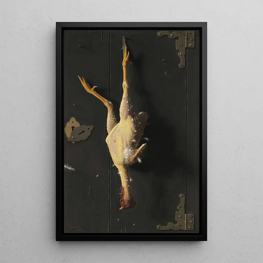 William Michael Harnett, geboren in 1848, wordt erkend als een van de meesters van het Amerikaanse trompe-l'œil. Geïnspireerd door Europees realisme, wist Harnett composities te creëren die de eenvoudige voorstelling overstijgen, en de kijker uitnodigen interactie te hebben met het kunstwerk. Zijn vermogen om te spelen met optische illusies en alledaagse objecten met ongelooflijke precisie weer te geven, markeerde zijn tijd. "Voor het zondagse avondeten" illustreert perfect zijn stijl, waarbij een onberispelijke techniek wordt gecombineerd met een gevoeligheid voor thema's van huiselijk leven en culinaire tradities.