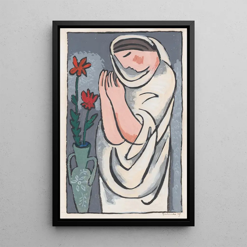 Kunstdruk | Vrouw en bloem - Mikuláš Galanda