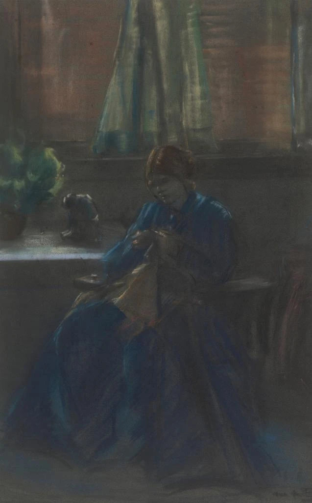 Mina Arndt, active au début du XXe siècle, est souvent reconnue pour son rôle dans le développement du modernisme. Influencée par les grands maîtres de son époque, elle a su développer un style unique qui allie abstraction et figuration. "Femme en bleu" illustre parfaitement sa capacité à capturer l'essence de ses sujets tout en explorant des thèmes universels tels que la féminité et l'introspection. Son œuvre, bien que parfois méconnue, a eu un impact significatif sur la scène artistique, et continue d'être redécouverte par les amateurs d'art contemporain.