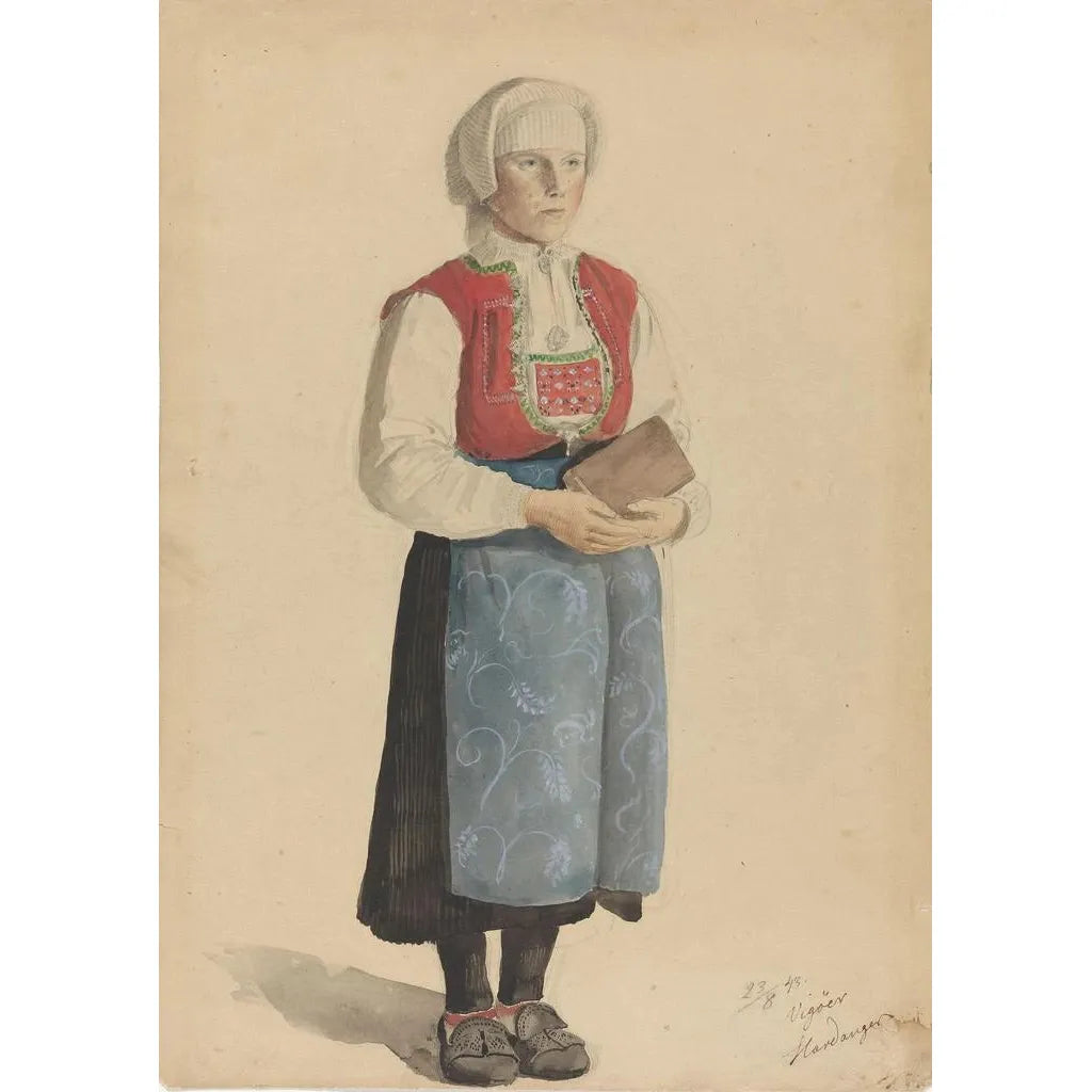 Kunstdruk | Vrouw in traditioneel kostuum Viky - Adolph Tidemand