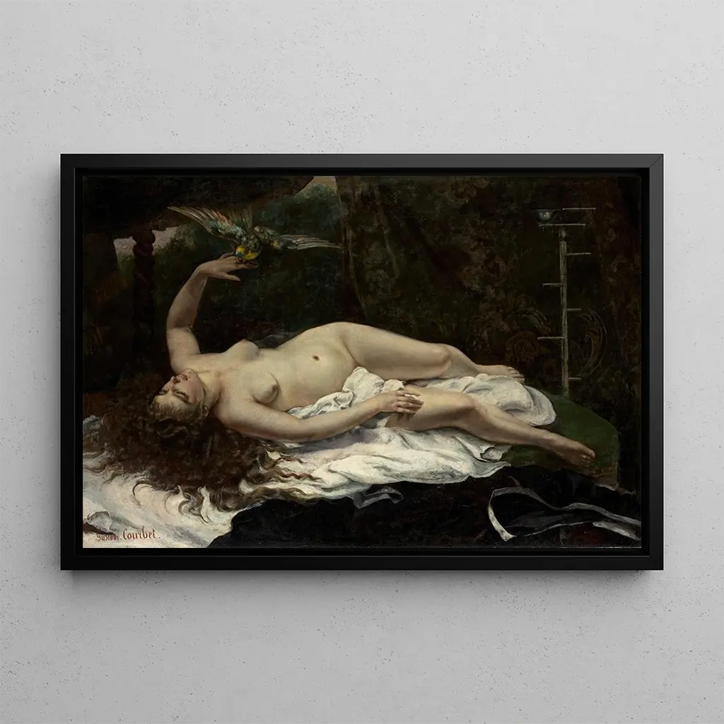 Kunstdruk | Vrouw met een Papegaai - Gustave Courbet