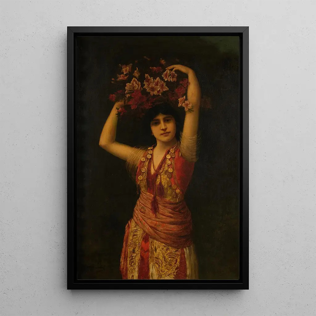 Jean-Joseph Benjamin-Constant, peintre français né en 1845, est une figure emblématique de l'orientalisme. Sa carrière, marquée par des voyages en Afrique du Nord, lui a permis d'explorer des thèmes exotiques et de les traduire avec une sensibilité unique. "Femme avec Panier" illustre parfaitement son talent pour capturer la beauté des femmes et des scènes de la vie quotidienne dans un style riche et coloré. À travers ses œuvres, il a contribué à façonner la perception de l'Orient en Europe, offrant une vision romantique et idéalisée de ces cultures.
