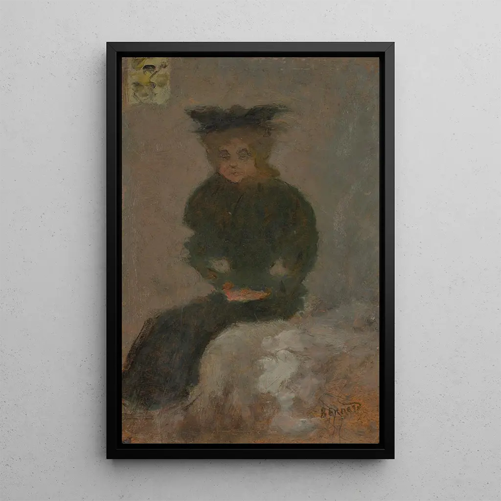 In dit iconische kunstwerk vangt Pierre Bonnard de essentie van een zittende vrouw, elegant gekleed met een zwarte hoed. De warme kleuren en de delicate nuances van het doek roepen een zachte en intieme sfeer op. Het licht speelt met de vormen, waardoor schaduwen ontstaan die de silhouet van de vrouw benadrukken, terwijl de bloemrijke details op de achtergrond een vleugje poëzie toevoegen. Bonnard’s techniek, die impressionisme en post-impressionisme combineert, geeft deze kunstdruk een emotionele diepgang en nodigt de kijker uit om zich onder te dompelen in het persoonlijke universum van haar model.