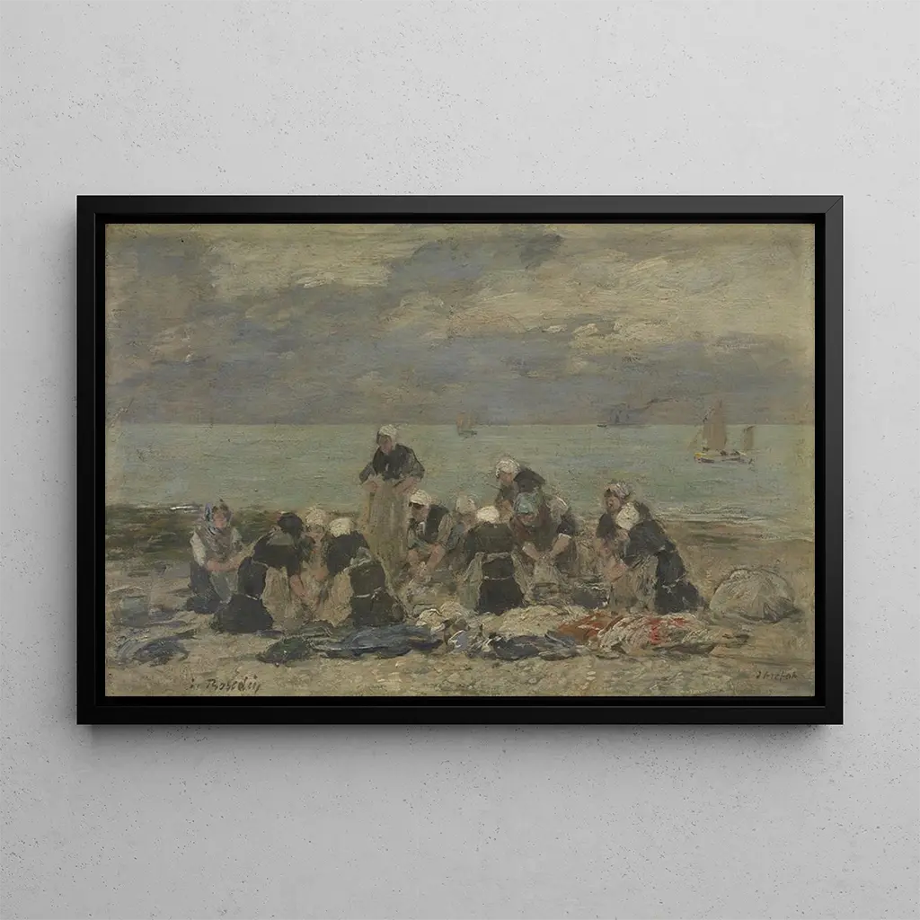 In Femmes lavant le linge à Étretat, Eugène Boudin legt een moment van het dagelijks leven vast aan de Normandische kust. De vrouwelijke figuren, verdiept in hun taak, worden badend in een zachte licht dat de schoonheid van de omliggende landschappen benadrukt. De pastelkleuren en de delicate penseelstreken roepen een rustige, bijna nostalgische sfeer op. Boudin, een voorloper van het impressionisme, slaagt erin een gevoel van beweging en levendigheid over te brengen, waardoor dit werk een ware ode is aan eenvoud en de schoonheid van het alledaagse. Eugène Boudin: de pionier van het impressionisme Eugène Boudin, geboren in 1824 in Honfleur, wordt vaak beschouwd als een van de voorlopers van het impressionisme. Geïnspireerd door het licht en de maritieme landschappen van Normandië, ontwikkelde hij een unieke stijl die de natuur en het buitenleven benadrukt. Zijn werken, waaronder Femmes lavant le linge à Étretat, getuigen van zijn talent om de nuances van het licht en de veranderende atmosferen vast te leggen. Boudin speelde ook een belangrijke rol in de opleiding van vele impressionistische kunstenaars, waaronder Claude Monet, door hen aan te moedigen buiten te schilderen en de effecten van het licht op hun onderwerpen te verkennen. Een decoratief kunstwerk met vele voordelen De reproductie van de kunstdruk Femmes lavant le linge à Étretat is een ideale keuze om uw interieur te verrijken. Of het nu in een woonkamer, eetkamer of kantoor is, dit doek brengt een vleugje sereniteit en charme in uw ruimte. De kwaliteit van de kunstdruk garandeert een opmerkelijke fideliteit aan de details en kleuren van het originele kunstwerk, waardoor u het talent van Eugène Boudin volledig kunt waarderen. Door dit kunstwerk in uw decoratie te integreren, geeft u uw interieur een kunstwerk dat de schoonheid van het alledaagse oproept en uitnodigt tot contemplatie.