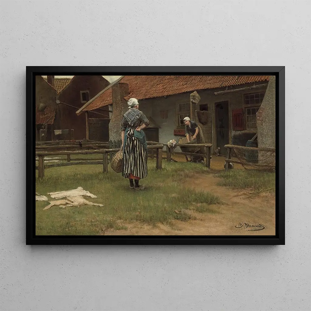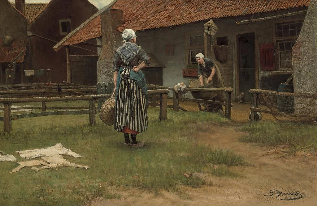 Bernardus Johannes Blommers, geboren in 1845 in Nederland, staat bekend om zijn weergaven van het landelijke leven en de natuur. Geïnspireerd door de impressionistische beweging, wist hij momenten uit het leven met een bijzondere gevoeligheid vast te leggen. Blommers wijdde zijn carrière aan het schilderen van alledaagse scènes, waarbij hij de schoonheid van eenvoudige gebaren en menselijke interacties benadrukte. Jour de lessive is een perfect voorbeeld van zijn stijl, waarin hij een levendig moment uit het leven met grote delicatesse weet te vereeuwigen, en tegelijkertijd eer betoont aan de Nederlandse cultuur.