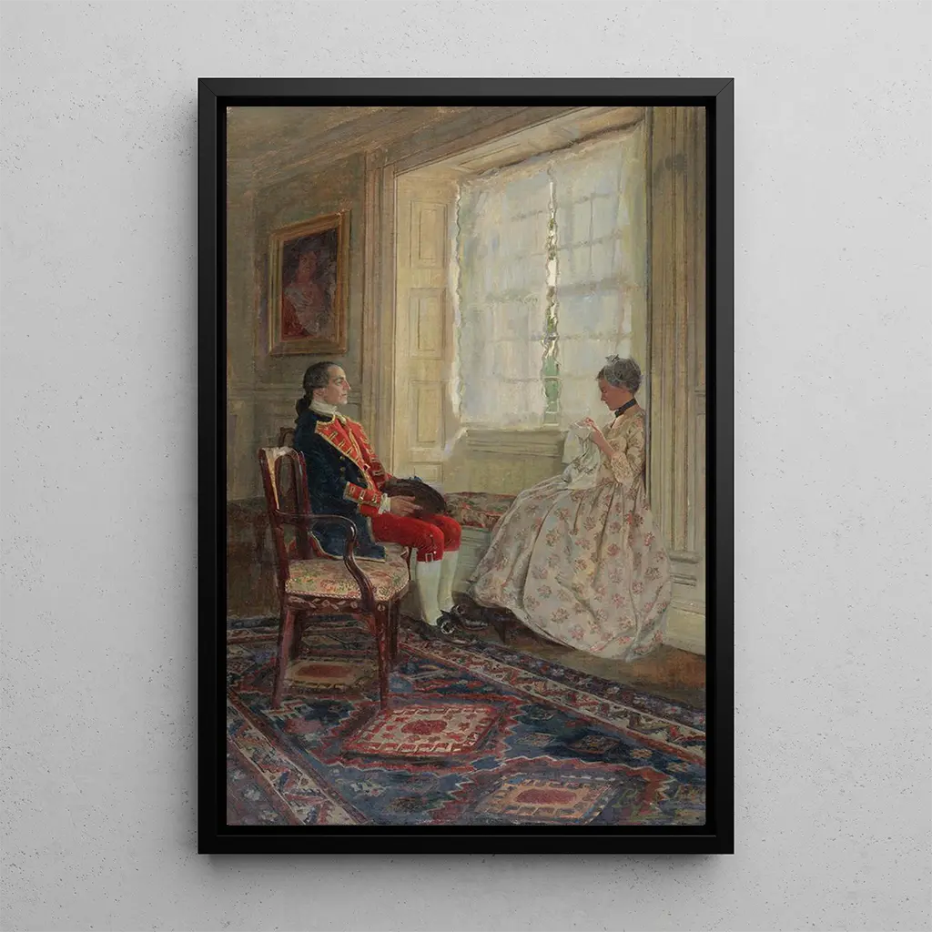 Washington et Mary Philipse : un portrait de l'amour et du pouvoir. Dans cette kunstdruk du tableau "Washington et Mary Philipse", Howard Pyle capture une scène intime et chargée d'émotion. Les couleurs douces et les jeux de lumière mettent en avant la tendresse entre les deux personnages, tout en évoquant le contexte historique de leur époque. La technique de Pyle, qui allie précision et sensibilité, permet de ressentir la profondeur des sentiments qui les unissent. Les détails des costumes et des accessoires ajoutent une richesse visuelle, rendant cette œuvre à la fois romantique et historique, un véritable témoignage de l'époque coloniale américaine. Howard Pyle : un pionnier de l'art narratif américain. Howard Pyle, artiste et illustrateur influent du XIXe siècle, a su marquer son époque par ses œuvres historiques et ses récits visuels. Formé à l'école des beaux-arts, il a développé un style distinctif, alliant réalisme et éléments romantiques. Pyle a joué un rôle essentiel dans la popularisation de l'illustration en tant qu'art à part entière, influençant de nombreux artistes contemporains. Son travail sur des figures emblématiques de l'histoire américaine, comme George Washington, témoigne de son engagement à capturer l'essence de son temps, tout en rendant hommage à des personnages clés de l'histoire. Une acquisition décorative aux multiples atouts. La reproduction du tableau "Washington et Mary Philipse" constitue un ajout précieux à votre décoration intérieure. Que ce soit dans un salon, un bureau ou une chambre, cette toile évoque une atmosphère de romantisme et d'histoire. Sa qualité d'impression assure une fidélité exceptionnelle aux détails de l'œuvre originale, permettant d'apprécier pleinement le talent de Pyle. Avec son attrait esthétique et son message chargé d'émotion, cette œuvre devient un point focal de votre espace, suscitant l'admiration et la curiosité de vos invités.