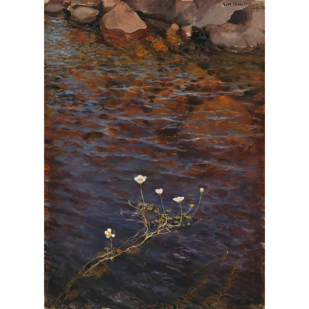 Eero Järnefelt, een iconische figuur van de Finse kunst, wist zijn tijd te markeren met zijn realistische benadering en zijn passie voor de natuur. Geboren in 1863, kreeg hij zijn opleiding aan de Kunstacademie van Sint-Petersburg voordat hij zich in Parijs vestigde, waar hij beïnvloed werd door de impressionisten. Zijn werk, waarvan "Renoncule d'eau" een perfect voorbeeld is, weerspiegelt zijn verlangen om de vergankelijke schoonheid van de natuur vast te leggen. Järnefelt speelde een cruciale rol in het bevestigen van een Finse artistieke identiteit, en zijn schilderijen blijven vele hedendaagse kunstenaars inspireren.