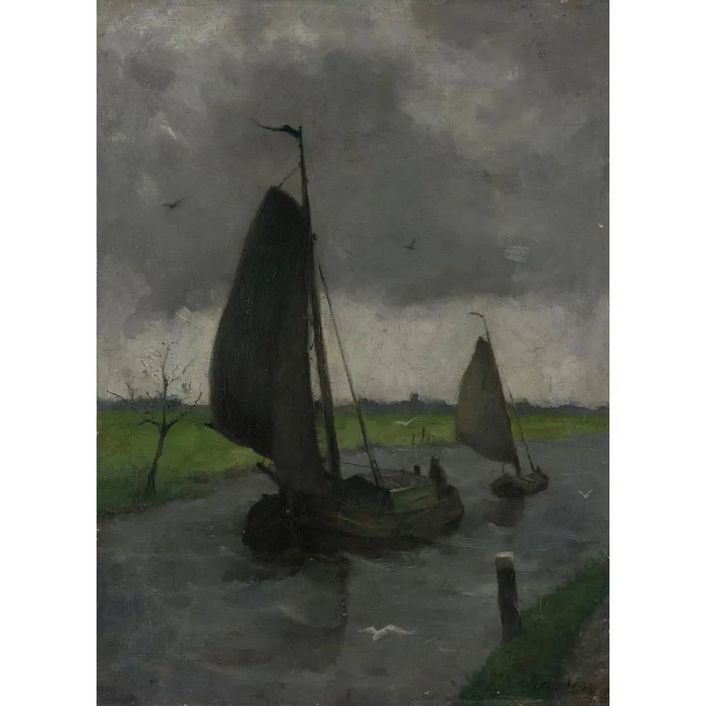 Kunstdruk | Waterweg met zeilende boten - Eduard Karsen