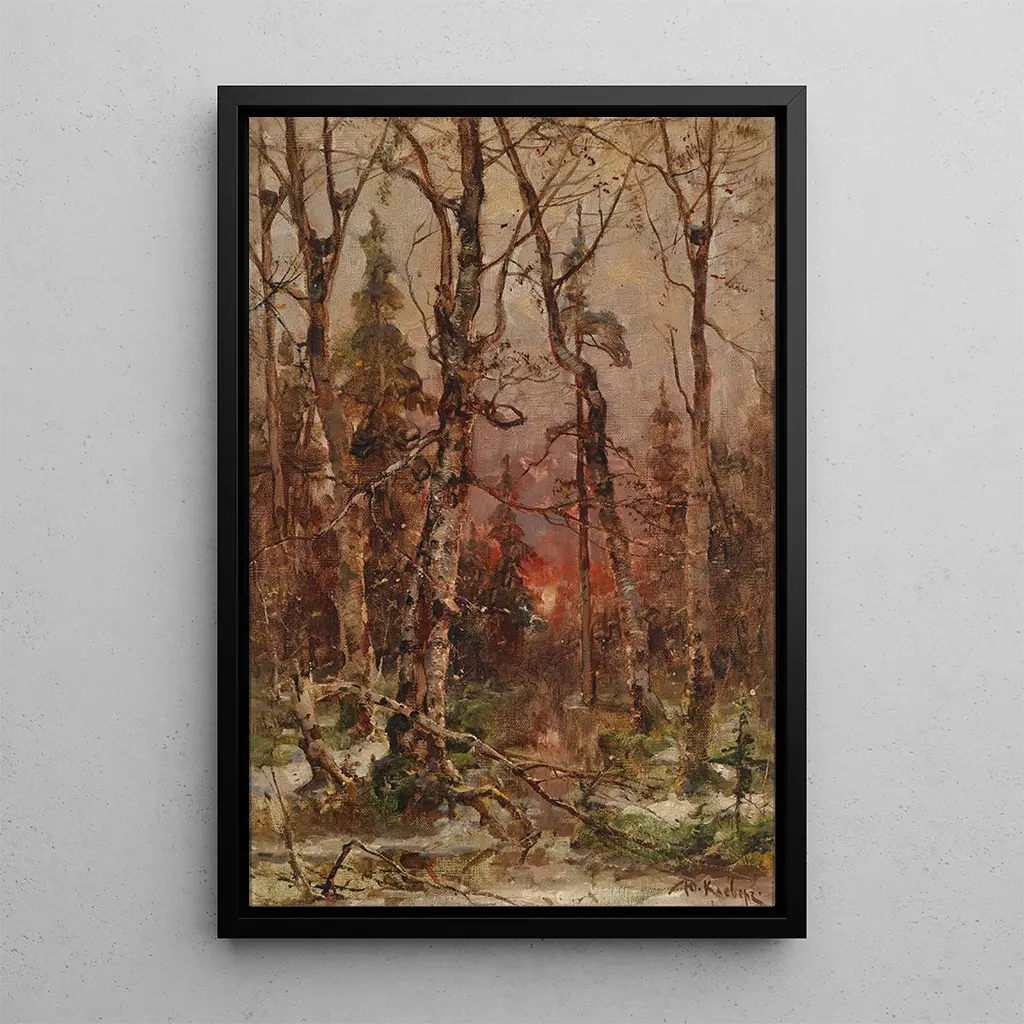 Landschap in de winter bij zonsondergang: een harmonie tussen hemel en aarde De kunstdruk "Landschap in de winter bij zonsondergang" van Julius Sergius Klever roept een rustige scène op waarin de natuur zich hult in warme, gouden tinten. De compositie, gedomineerd door kale bomen en een vurige hemel, creëert een sfeer van sereniteit. De nuances van blauw en oranje mengen zich subtiel, terwijl het licht van de ondergaande zon het besneeuwde landschap verlicht. De techniek van Klever, die realisme en impressionisme combineert, stelt de kijker in staat de frisheid van de lucht en de vergankelijke schoonheid van een vluchtig moment te voelen. Deze kunstdruk nodigt uit tot contemplatie en ontsnapping, en brengt de kijker in het hart van een betoverende winter. Julius Sergius Klever: een meester van het noordelijke landschap Julius Sergius Klever, Russische schilder, staat bekend om zijn verfijnde landschappen. Actief aan het einde van de 19e eeuw, sluit hij zich aan bij de artistieke beweging die de schoonheid van de natuur viert, vooral in noordelijke regio’s. Geïnspireerd door de meesters van het romantische landschap, ontwikkelt Klever een stijl die precisie en emotie combineert. Zijn werken, vaak doordrenkt met melancholie, weerspiegelen een diep respect voor de natuur en haar variaties. Door winterse scènes te schilderen, vangt hij de essentie van de seizoenen en biedt hij een poëtische visie op de realiteit. Klever blijft een belangrijke figuur in de kunst van het landschap, wiens nalatenschap kunstenaars van nu blijft inspireren. Een decoratieve kunstdruk met vele voordelen De kunstdruk van "Landschap in de winter bij zonsondergang" is een ideaal decoratief stuk om uw interieur te verfraaien. Of het nu in een woonkamer, kantoor of slaapkamer is, deze kunstdruk brengt warmte en rust. De hoge kwaliteit van de afdruk, die trouw blijft aan de originele nuances, laat de volledige schoonheid van het werk zien, terwijl het een artistieke dimensie aan uw inrichting toevoegt. Met zijn esthetische aantrekkingskracht wordt deze doek een blikvanger die de bewondering van uw gasten oproept. Door te kiezen voor deze kunstdruk, kiest u voor een werk dat elegantie en sereniteit combineert, en zo uw woonruimte verrijkt.