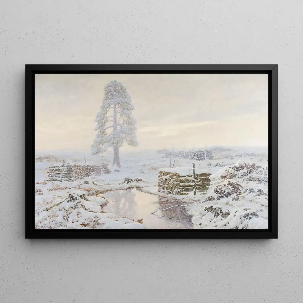 Winterlandschap: een bevroren sereniteit in het hart van de natuur Het schilderij "Winterlandschap" van Józef Rapacki roept een rustige scène op waarin de sneeuw het landschap delicieus bedekt. De koele tinten van blauw en wit domineren de compositie, waardoor een sfeer van rust en kalmte ontstaat. De techniek van de kunstenaar, die realisme en impressionisme combineert, laat de frisheid van de winterlucht voelen. De details van de kale bomen en de schaduwen die op de sneeuw worden geworpen, voegen een bijna tastbare dimensie toe aan dit werk, en nodigen de kijker uit om onder te dompelen in deze serene wereld. Józef Rapacki: een meester van het Poolse landschap Józef Rapacki, actief in de 19e eeuw, wordt erkend om zijn vermogen om de schoonheid van Poolse landschappen vast te leggen. Geïnspireerd door het romantisme, past hij zich aan binnen een artistieke traditie die de natuur en menselijke emoties waardeert. Zijn werken, vaak doordrenkt met melancholie, getuigen van een tijd waarin kunst een middel was om gevoelens uit te drukken tegenover de natuur. Rapacki wist realistische schilderiselementen te combineren met poëtische accenten, waardoor hij een belangrijke figuur werd in de Poolse kunst van zijn tijd. Een decoratief kunstdruk met vele voordelen De kunstdruk van "Winterlandschap" is een ideaal decoratief stuk om een vleugje sereniteit aan uw interieur toe te voegen. Of het nu in een woonkamer, kantoor of slaapkamer is, dit schilderij nodigt uit tot contemplatie en dagdromen. De kwaliteit van de kunstdruk garandeert een trouwheid aan de details en de originele kleuren, terwijl het een onmiskenbare esthetische aantrekkingskracht biedt. Opgehangen aan een muur wordt het een centraal punt dat de sfeer van uw ruimte verrijkt, en tegelijkertijd de tijdloze schoonheid van de winter oproept.