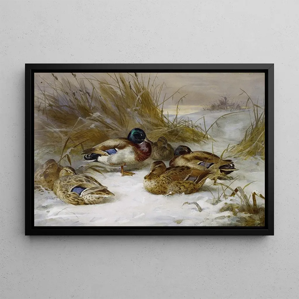 Winterlandschap met eendje: een winterse sereniteit De kunstdruk Winterlandschap met eendje van Archibald Thorburn toont een besneeuwd landschap, waar de rust van de winter wordt versterkt door de aanwezigheid van een eendje glijdend over het bevroren water. De witte en blauwe tinten domineren, waardoor een rustige en stille sfeer ontstaat. De fijnheid van de details, van sneeuwvlokken tot de reflecties op het water, getuigt van de technische meesterschap van de kunstenaar. Deze kunstdruk nodigt uit tot een zachte contemplatie, waarin de schoonheid van de winterse natuur zich langzaam ontvouwt, als een goed bewaard geheim. Archibald Thorburn: een virtuoos van de wilde fauna Archibald Thorburn, actief in het begin van de 20e eeuw, is beroemd om zijn voorstellingen van de fauna en de Britse landschappen. Geïnspireerd door de naturalistische beweging, wist hij wetenschappelijke precisie te combineren met artistieke gevoeligheid. Zijn werken, vaak gericht op vogels en landschappen, zijn het resultaat van een minutieuze observatie van de natuur. Thorburn heeft een belangrijke rol gespeeld in het vergroten van het bewustzijn over natuurbehoud, en zijn nalatenschap leeft voort in zijn prachtige illustraties en kunstwerken, die nog steeds liefhebbers van kunst en natuur inspireren. Een decoratief kunstdruk met vele voordelen De kunstdruk van Winterlandschap met eendje is ideaal om een vleugje natuur aan uw interieurdecoratie toe te voegen. Of het nu in een woonkamer, kantoor of slaapkamer is, deze doek roept vrede en de schoonheid van de winter op. De reproduktiekwaliteit garandeert een indrukwekkende trouw aan het originele werk, waardoor iedereen kan genieten van zijn tijdloze charme. Door deze kunstdruk in uw ruimte te integreren, creëert u een warme en uitnodigende sfeer, terwijl u de schoonheid van de natuurlijke wereld viert.