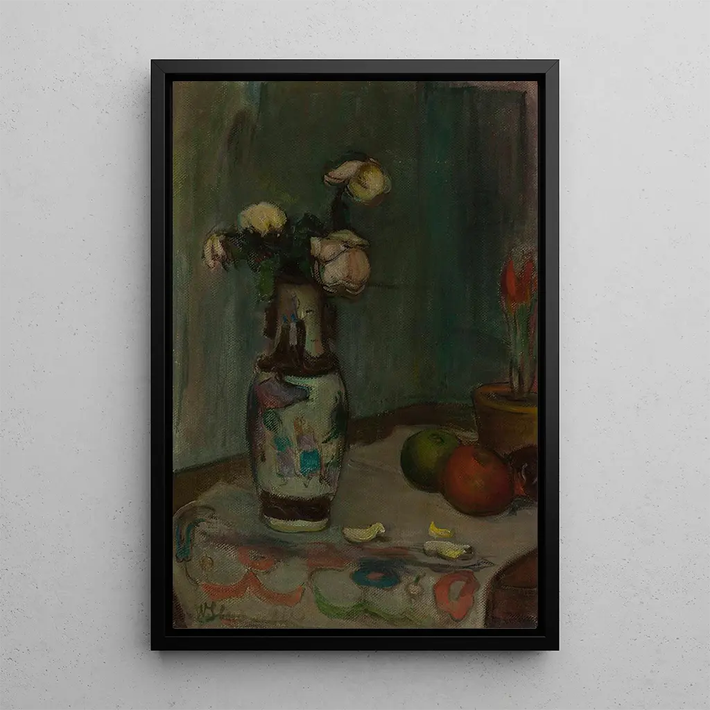 In dit delicate kunstwerk biedt Władysław Ślewiński een harmonieuze compositie waarin witte rozen bloeien in een elegante vaas. De bloemblaadjes, stralend wit, contrasteren met de zachte nuances van de achtergrond, waardoor een serene en rustgevende sfeer ontstaat. De olieverftechniek maakt het mogelijk om de fluweelzachte textuur van de bloemen vast te leggen, terwijl het licht subtiel speelt op de oppervlakken en de vergankelijke schoonheid van de natuur benadrukt. Elk detail, zorgvuldig uitgewerkt, nodigt de kijker uit tot een stille contemplatie en onthult de diepte van de emoties die de natuur kan oproepen.