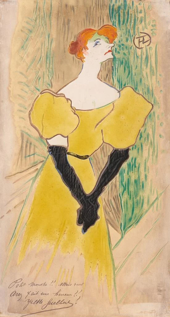 Henri de Toulouse-Lautrec, geboren in 1864, wordt erkend als een van de meest invloedrijke kunstenaars van zijn tijd. Zijn carrière, hoewel kort, werd gekenmerkt door een intense verkenning van de thema’s van het nachtleven en de Parijse shows. Geïnspireerd door het impressionisme en het post-impressionisme, ontwikkelde hij een onderscheidende stijl die realisme en stylisering combineert. Toulouse-Lautrec slaagde erin de geest van de Belle Époque vast te leggen, waardoor zijn kunstwerken waardevolle getuigenissen worden van de populaire cultuur van zijn tijd. Yvette Guilbert, met haar talent en durf, belichaamt perfect deze gouden periode, en haar portret door Toulouse-Lautrec is een viering van haar kunst.