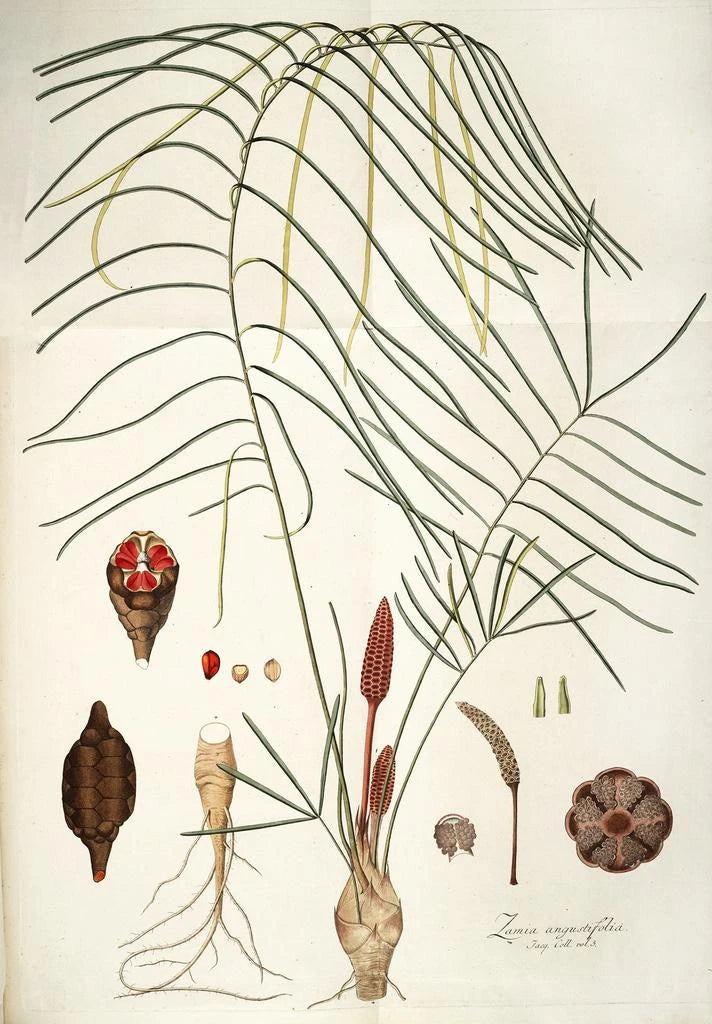 Schilderij Zamia angustifolia - Nikolaus Joseph Freiherr von Jacquin | Kunstdruk