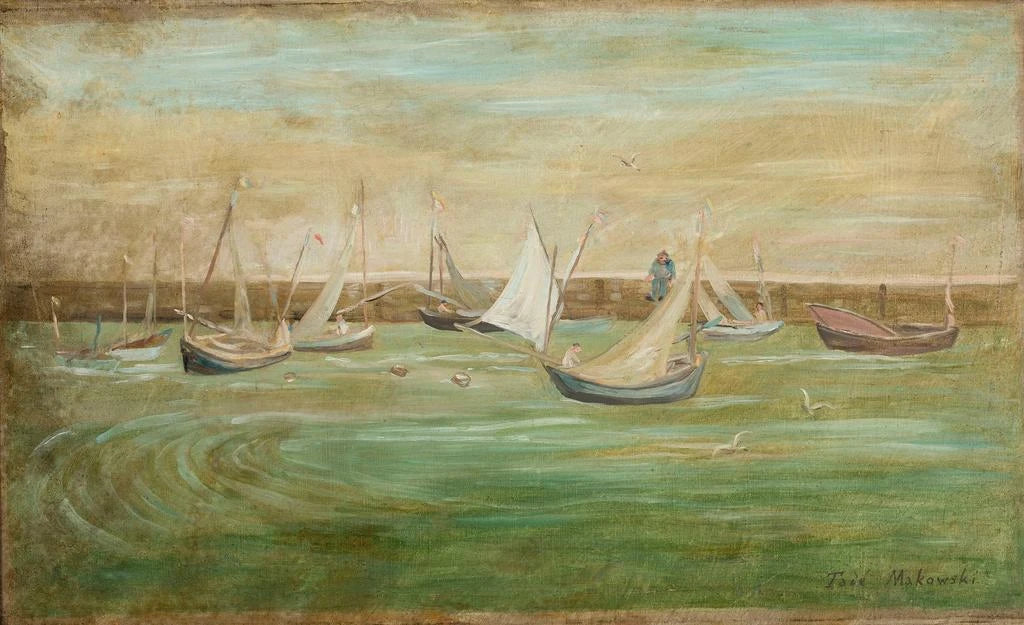 Zeilboten: een dans op de golven. In dit werk van Tadeusz Makowski komen de zeilboten tot leven, glijdend met gratie over het rustige water. De levendige kleuren en de gestileerde vormen roepen een vrolijke en dynamische sfeer op, waarin de beweging van de zeilen bijna voelbaar lijkt. Makowski, met zijn unieke aanpak, slaagt erin de essentie van navigatie vast te leggen, waarbij abstractie en realiteit worden gecombineerd. Elk element van de compositie, van de zeilen tot de reflecties op het water, is zorgvuldig georkestreerd om een visueel harmonisch geheel te creëren dat de kijker meeneemt in een betoverende maritieme wereld. Tadeusz Makowski: een pionier van het Poolse modernisme. Poolse kunstenaar actief in het begin van de 20e eeuw, Tadeusz Makowski wordt erkend om zijn innovatieve stijl die cubistische en expressionistische invloeden combineert. Zijn carrière, gekenmerkt door reizen naar Frankrijk, stelt hem in staat om zich te verdiepen in de Europese kunststromingen, terwijl hij stevig geworteld blijft in zijn oorspronkelijke cultuur. Makowski wist zich te onderscheiden door zijn vermogen om traditionele thema’s, zoals navigatie, te herinterpreteren door een moderne lens. Zijn werk, hoewel minder bekend dan dat van sommige van zijn tijdgenoten, speelt een cruciale rol in de evolutie van de Poolse kunst. Een decoratief stuk met vele voordelen. De kunstdruk van dit doek van Tadeusz Makowski is een waardevolle aanvulling op elke kunstcollectie, die een vleugje frisheid en dynamiek toevoegt aan uw interieurdecoratie. Of het nu in een woonkamer, kantoor of slaapkamer is, dit schilderij trekt de aandacht en wekt bewondering. De kwaliteit van de afdruk garandeert een uitzonderlijke trouw aan de levendige kleuren en de verfijnde details van het originele werk. Door te kiezen voor deze kunstdruk geeft u uw ruimte een unieke maritieme sfeer, terwijl u het artistieke erfgoed van een meester van het modernisme viert.