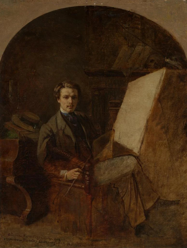 Kunstdruk | Zelfportret voor het schildersatelier - Eduard Hunziker