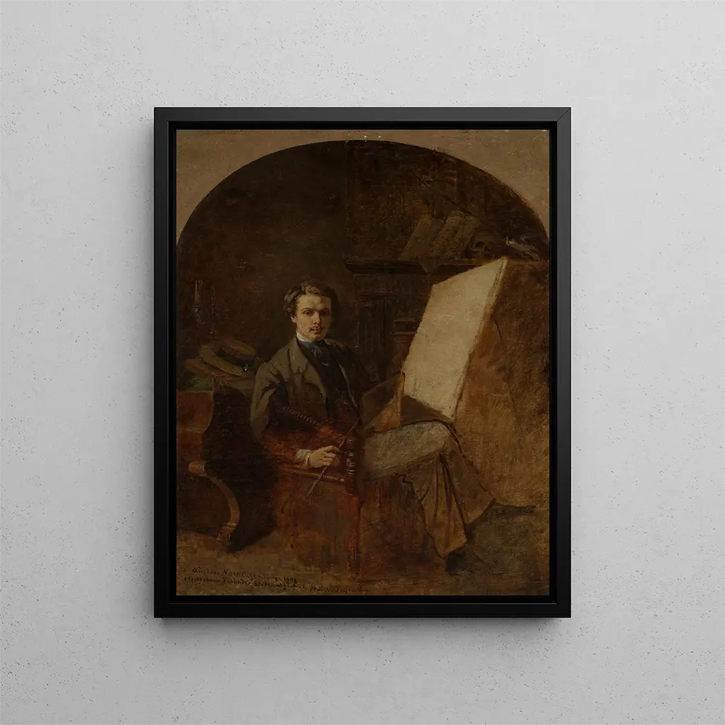 Reproductie Zelfportret voor het schildersatelier - Eduard Hunziker – Boeiende introductie Het werk "Zelfportret voor het schildersatelier" van Eduard Hunziker belichaamt een diepe introspectie en een verkenning van de thema's identiteit en artistieke creatie. In dit stuk presenteert de kunstenaar zichzelf tegenover zijn eigen reflectie, waarbij hij niet alleen zijn fysieke verschijning vastlegt, maar ook de essentie van zijn creatieve proces. Dit schilderij, rijk aan nuances en emoties, nodigt de kijker uit om onder te dompelen in de innerlijke wereld van de kunstenaar, terwijl het nadenken over de rol van kunst in zelfbegrip wordt gestimuleerd. Het licht speelt een centrale rol, subtiel de trekken van Hunziker verlichtend, terwijl schaduwen lijken te dansen rondom hem, wat de dualiteit van de kunstenaar benadrukt, zowel schepper als onderwerp. Stijl en uniekheid van de kunstdruk De stijl van Eduard Hunziker onderscheidt zich door een intieme aanpak en bijzondere aandacht voor details. In "Zelfportret voor het schildersatelier" wordt de techniek van clair-obscur benadrukt, wat een sfeer creëert die zowel dramatisch als contemplatief is. De kleuren, hoewel ingetogen, worden zorgvuldig gekozen om een palet van emoties over te brengen. De wazige achtergrond, bijna onduidelijk, maakt het mogelijk de aandacht op het gezicht van de kunstenaar te richten, terwijl het schildersatelier, symbool van de creatieve daad, zich als een stille getuige van zijn artistieke betrokkenheid opstelt. Dit werk is niet slechts een eenvoudig zelfportret; het wordt een reflectie op het proces zelf van creatie, een dialoog tussen de kunstenaar en zijn werk, waarbij elke penseelstreek een bevestiging van zichzelf wordt. De kunstenaar en zijn invloed Eduard Hunziker, iconisch figuur uit het begin van de twintigste eeuw, wist zijn tijd te markeren met een unieke visie op kunst. Geïnspireerd door de artistieke bewegingen van zijn tijd, wist hij traditie en innovatie te combineren, waardoor een stijl ontstond die hem eigen is. Zijn werk beperkt zich niet tot eenvoudige representatie; hij zoekt de menselijke ziel vast te leggen in al haar complexiteit. Hunziker was ook een mentor voor vele opkomende kunstenaars, waarbij hij zijn passie en vakmanschap deelde. Zijn invloed is nog steeds voelbaar, zowel in kunstacademies als in ateliers van kunstenaars, waar zijn aanpak van