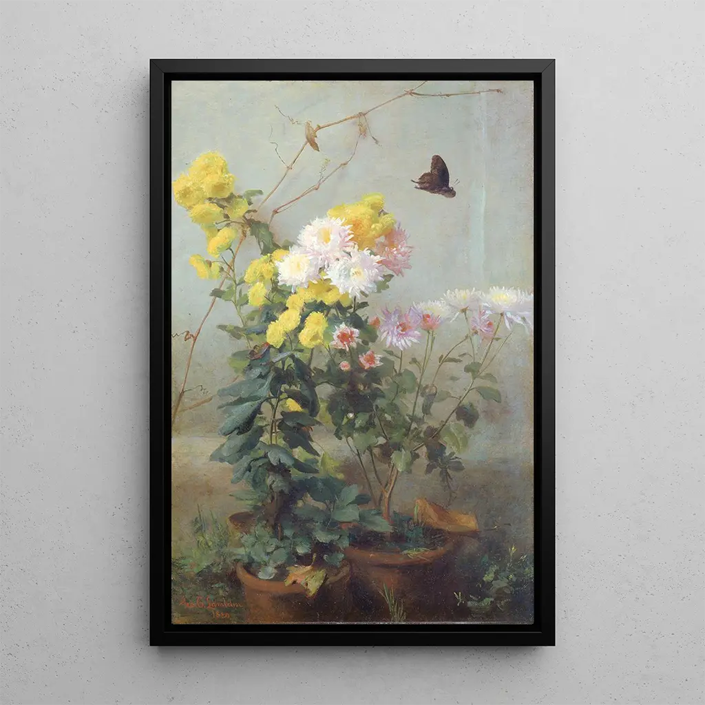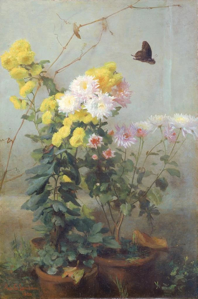 Le tableau "Soleil d'automne" de George Cochran Lambdin évoque une atmosphère chaleureuse et sereine. Les couleurs chaudes, allant des oranges aux jaunes dorés, se mêlent harmonieusement pour capturer la magie d'une journée d'automne. La technique de Lambdin, caractérisée par des coups de pinceau délicats et précis, donne vie à une scène où la lumière semble danser sur les feuilles. Ce tableau invite à la contemplation, permettant au spectateur de ressentir la douceur de l'air et la beauté éphémère de la nature à cette période de l'année.
