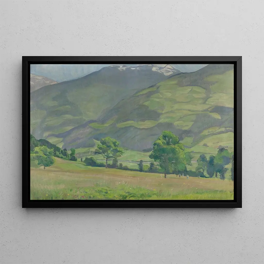 Vallée ensoleillée : een ode aan de rustige natuur "Vallée ensoleillée" van Hermann Grom-Rottmayer roept een idyllisch landschap op waar het gouden licht van de zon de groene heuvels streelt. De warme en heldere kleuren, variërend van stralende groenen tot zachte geeltonen, creëren een serene en rustgevende sfeer. De techniek van Grom-Rottmayer, die realisme combineert met een vleugje romantiek, laat de rust van deze plek voelen. De delicate details van de bomen en bloemen, evenals de vloeiendheid van de vormen, nodigen uit tot diepe contemplatie en brengen de kijker naar een oase van vrede. Hermann Grom-Rottmayer : een meester van het landschap Hermann Grom-Rottmayer, schilder uit het begin van de 20e eeuw, staat bekend om zijn vermogen om de schoonheid van natuurlijke landschappen vast te leggen. Geïnspireerd door de romantische beweging, wist hij de relatie tussen mens en natuur uit te drukken in zijn werken. Zijn creatieve periode wordt gekenmerkt door een groeiende interesse in licht en kleur, wat hem in staat stelde levendige en evocatieve composities te creëren. Grom-Rottmayer heeft een blijvende erfenis achtergelaten in de kunstwereld, en herinnert ons aan het belang van de natuur in ons dagelijks leven en onze behoefte aan verbinding ermee. Een decoratief kunstdruk met vele voordelen De kunstdruk van "Vallée ensoleillée" is een ideale decoratieve keuze om uw ruimte te verfraaien, of het nu in een woonkamer, kantoor of slaapkamer is. De afdrukkwaliteit garandeert een uitzonderlijke fideliteit aan de nuances en details van het originele werk, en brengt een vleugje sereniteit in uw interieur. Door dit schilderij in uw decoratie te integreren, creëert u een warme en uitnodigende sfeer, terwijl u de schoonheid van de natuur viert. Deze artistieke keuze is perfect voor wie zijn omgeving wil verrijken met een inspirerend en rustgevend stuk.
