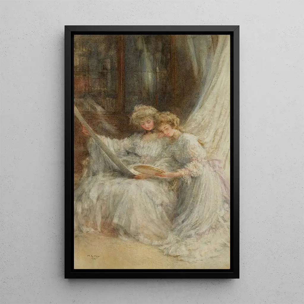 De kunstdruk van Sœurs, een werk van Mary Lightbody Gow, vangt de essentie van de verbondenheid tussen twee vrouwen. De zachte kleuren en de delicate uitdrukkingen van de gezichten roepen een warme intimiteit op. De compositie, gericht op de twee figuren, creëert een sterke visuele band, terwijl de vage achtergrond hun connectie versterkt. De schildertechniek van Gow, die realisme en impressionisme combineert, geeft dit doek een sfeer vol tederheid. Elke uitwisseling van blikken tussen de zussen vertelt een verhaal, een viering van broederliefde en onbreekbare banden.
